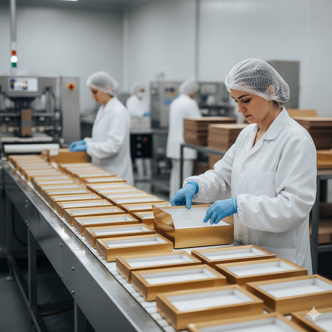 Скорость, строгость и точность при составлении коробок шоколадных конфет.